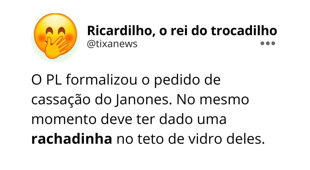 🐄E o Janones tucanou a rachadinha. Chamou de vaquinha. Vai vendo, BRASEW. Ele jura que ninguém vai conseguir provar que ele pegou o salário dos seus funcionários. Como todo mundo já sabe, ele foi gravado dizendo que ia pegar parte dos salários para compensar a perda de patrimônio que teve durante campanhas eleitorais.