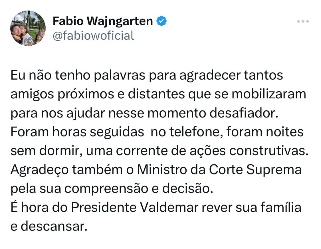 😈 O Valdemar Voldemort saiu da prisão. Valdemar, darling, o da Costa Neto, presidente e dono do PL. PL, partido do Bolsonaro. Aí o adv do Bolsonaro, o que era secretário de comunicação (é muito bombril esse Fabio Wajngarten), correu para as redes agradecer quem? Quem? Quem? O Xandão. Sim, darling.