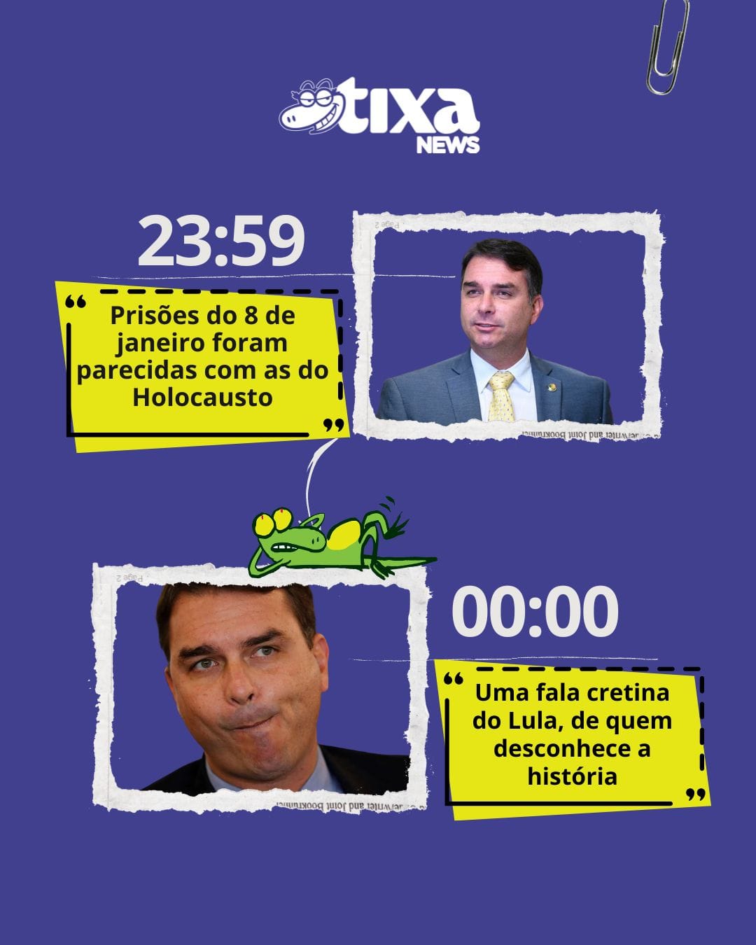 🤔 E o fanfarrão do Flavitcho Bolsonaro, o filho 01, que ficou indignadíssimo com o Lula? Flavitcho disse que foi a maior imbecilidade que Lula já disse, que foi uma fala cretina de quem desconhece a história. Aí você dá uma relembrada no passado do Flavitcho... E eis o que Flavio Bolsonaro, o senador, disse sobre as prisões do 8 de janeiro: